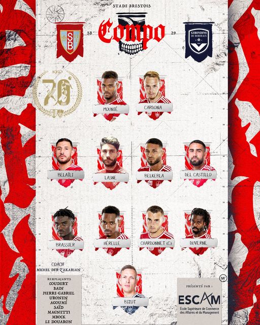 كشف مدرب بريست الفرنسي ميشال دير زاكاريان عن قائمة اللاعبين الأساسية التي سيعتمد عليها خلال مواجهة بوردو اليوم.