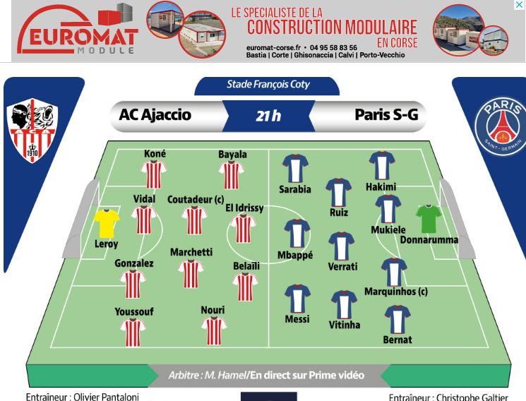 وستلعب المباراة القوية للنادي الكورسيكسي أمام ضيفه من العاصمة الفرنسية داخل القواعد بملعب “فرانسوا كوتي” في الجولة الـ 12 من عمر الليغ 1.