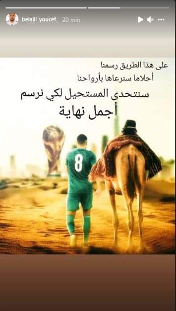 ونشر اللاعب السابق لفريق مولودية وهران تعليقا على صفحته الرسمية بشبكة التواصل الإجتماعي انستغرام قائلا: “على هذا الطريق رسمنا أحلامنا سنرعاها بأرواحنا، سنتحدى المستحيل لكي نرسم أجمل نهاية”.
