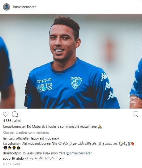 وسارع كل من سوداني، أوناس، سليماني، غزال، دوخة، بودبوز، عبد اللاوي، زفان، بن سبعيي غولام بن ناصر لتشر تهاني العيد على شبكة التواصل الإجتماعي أنستغرام.