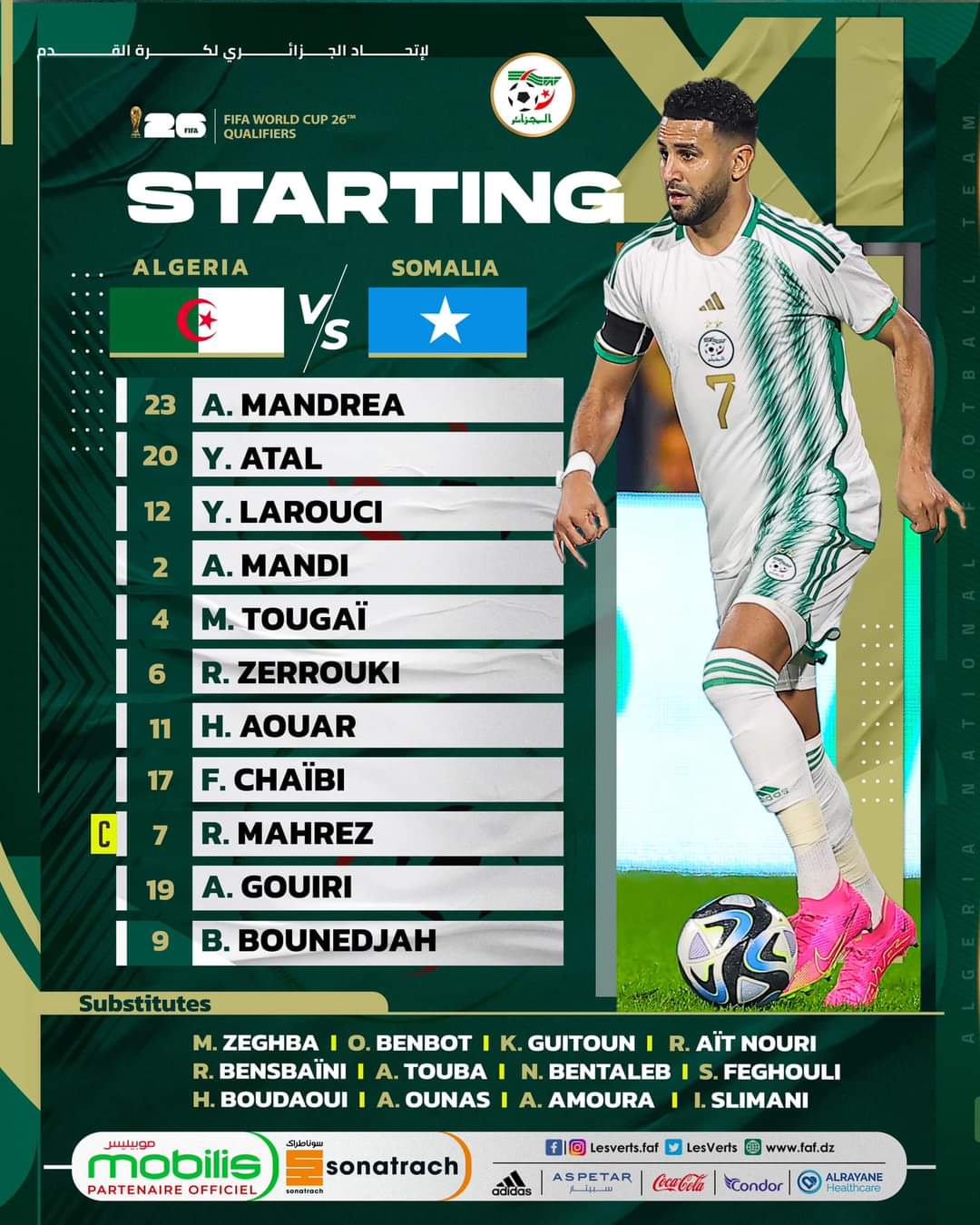بلماضي يختار هذه التشكيلة في مواجهة الصومال ولعروسي أساسيا لأول مرة