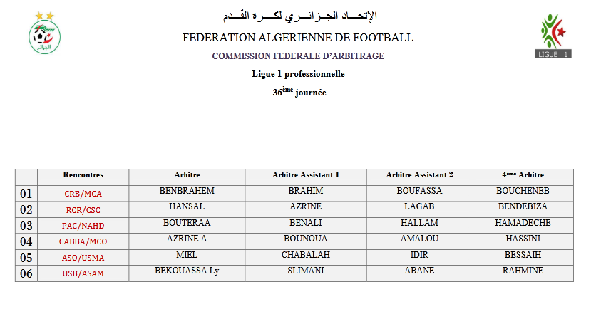 عينت اللجنة الفيدرالية للتحكيم، الحكم بن براهم، لإدارة قمة الجولة الـ36، والتي ستجمع بين فريقي شباب بلوزداد ومولودية الجزائر.