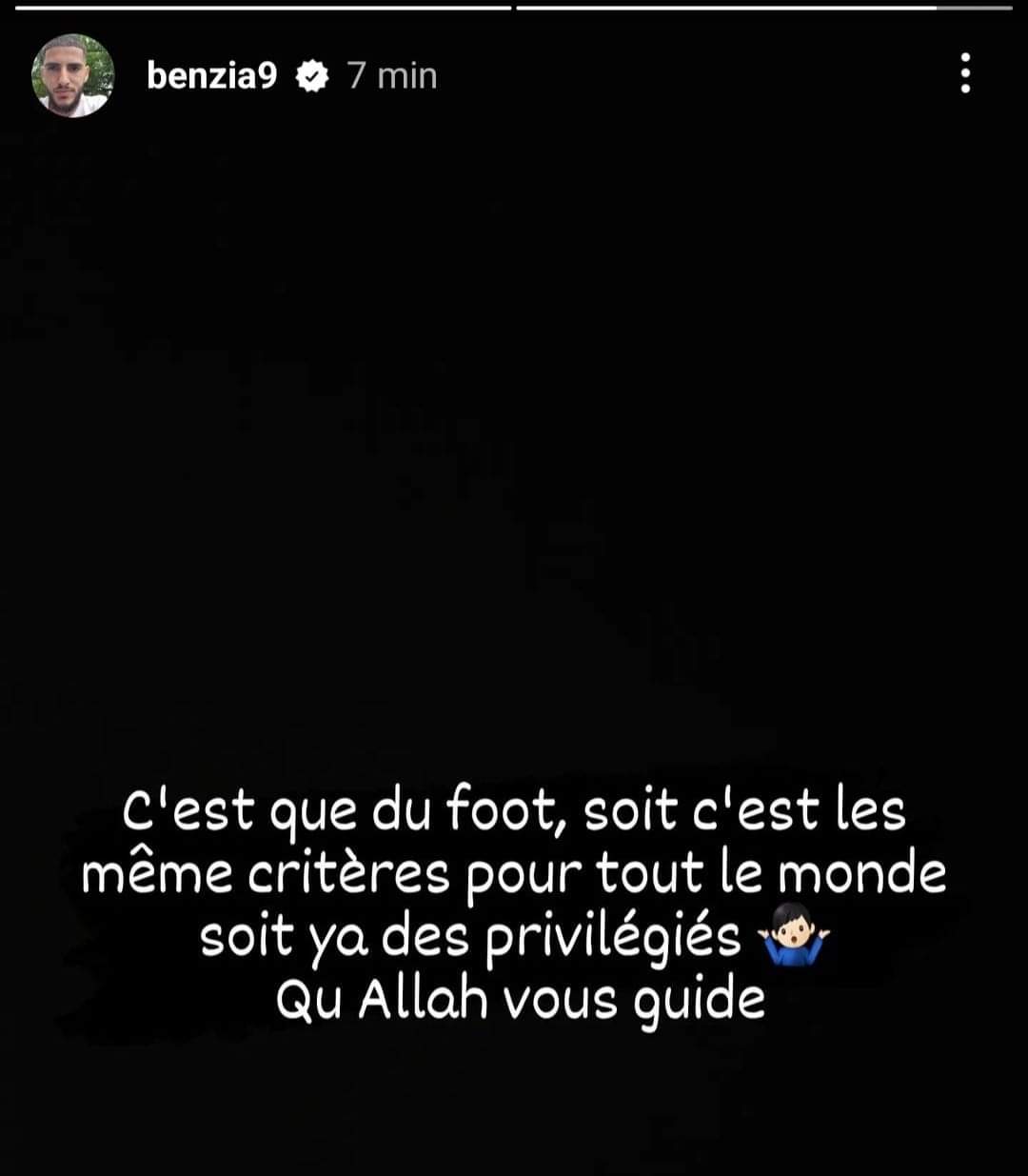 وقال بن زية، في هذا الخصوص: “إنها مجرد كرة قدم، إما أن تكون نفس المعايير للجميع أو أن هناك أشخاص متميزين، الله يهديكم”.