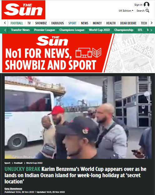 كشفت صحيفة “صن” البريطانية، اليوم الثلاثاء، تفاصيل وجهة الدولي الفرنسي كريم بن زيمة بعدما شوهد بإحدى المطارات الدولية.