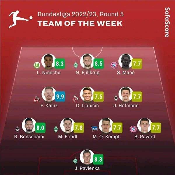 وكشف مسؤولو البوندسليغا الألمانية، عن تشكيلتهم المثالية للجولة الخامسة، والتي شهدت تواجد اسم بن سبعيني.