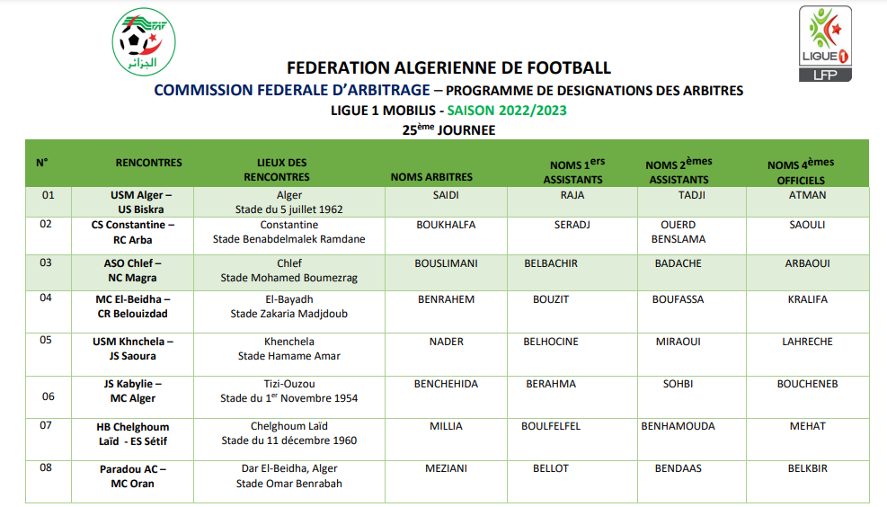 وكشف الموقع الرسمي للاتحاد الجزائري لكرة القدم، باقي تعيينات حكام مباريات هذه الجولة كاملة، والتي على النحو التالي: