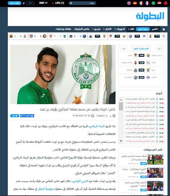 وحسب موقع “البطولة” المغربي، فإن المفاوضات بين الطرفين قطعت أشواطا متقدمة، واللاعب بن غيث، بات قريبا من الإنتقال للرجاء المغربي.