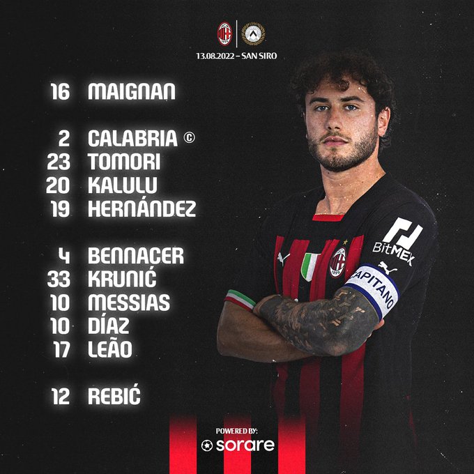 وكشفت إدارة الميلان، عبر الحساب الرسمي للفريق على “تويتر”، تشكيلتها الأساسية لهذه المواجهة، والتي ضمت اسم بن ناصر.