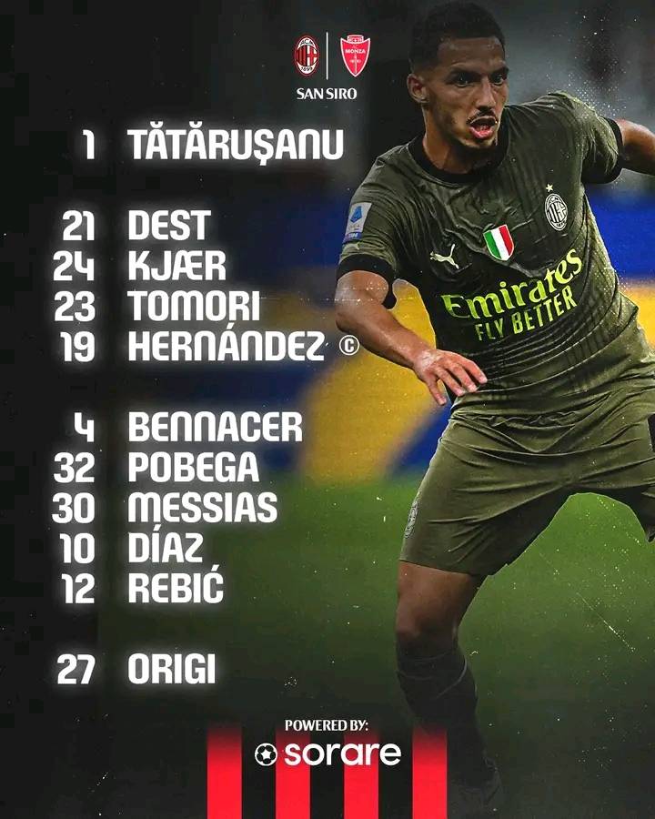 بن ناصر أساسي مع ميلان ضد مونزا