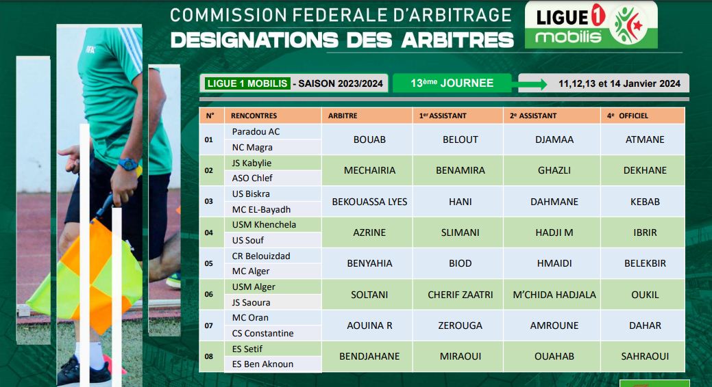 بن يحيى حكما لداربي بلوزداد والمولودية