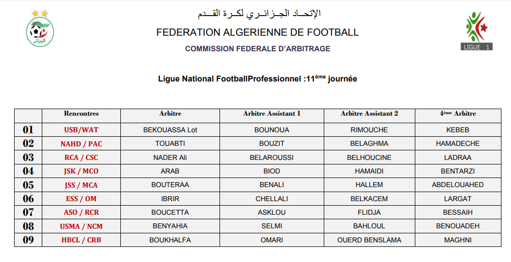 وسيدير الحكم بوترعة، هذه القمة، بمساعدة بن علي، كمساعد أول، وحالم، مساعد حكم ثاني، بالإضافة عبد الوهاب كحكم رابع.