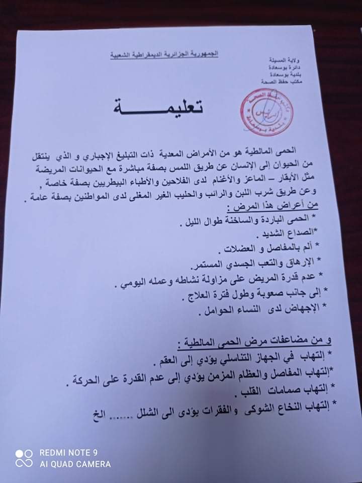 شهدت منطقة بوسعادة خلال الأيام الأخيرة تسجيل ارتفاع محسوس في حالات الإصابة بمرض الحمى المالطية.