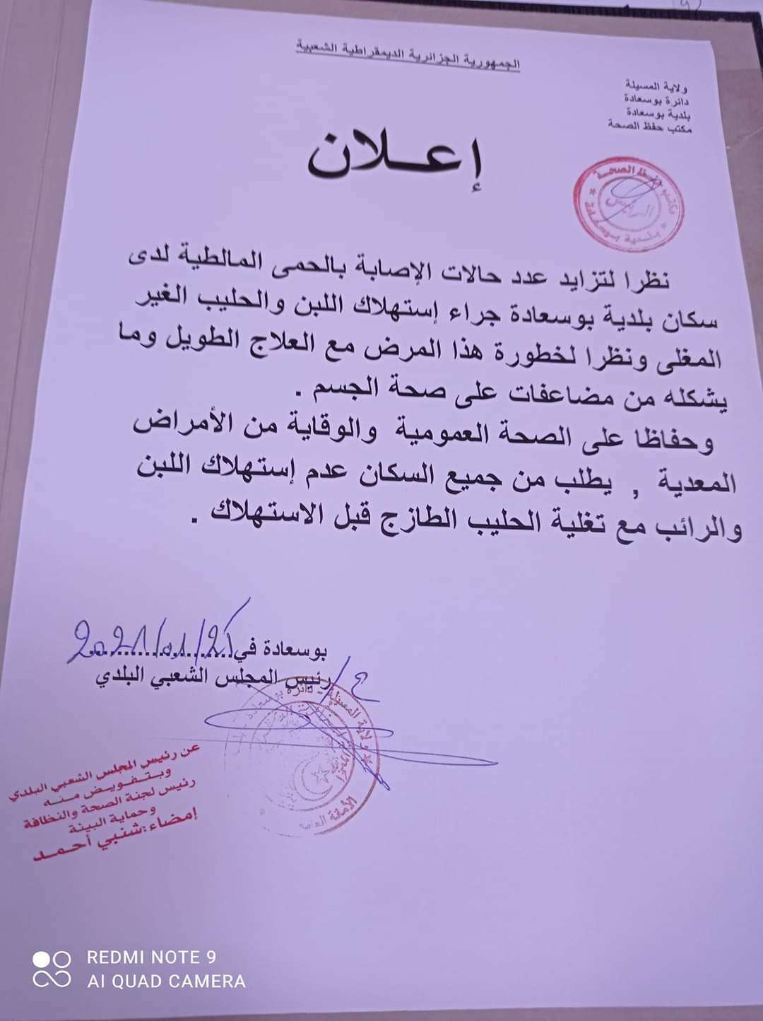 بوسعادة : مصالح البلدية تصدر بيانا لتوعية المواطنين بعد تسجيل حالات إصابة بالحمى المالطية