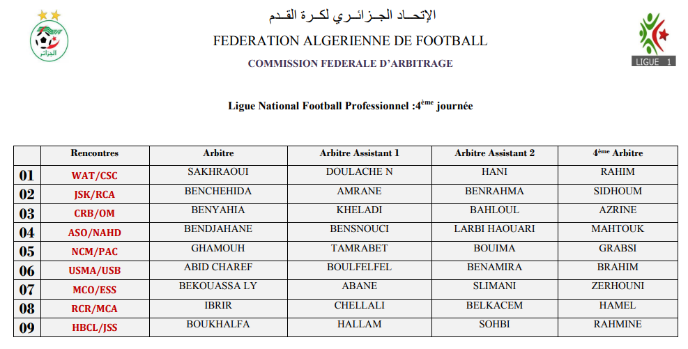 عينت الرابطة المحترفة لكرة القدم، الحكم إلياس بوكواسة، لإدارة قمة الجولة الرابعة من البطولة المحترفة، بين مولودية وهران، ووفاق سطيف.