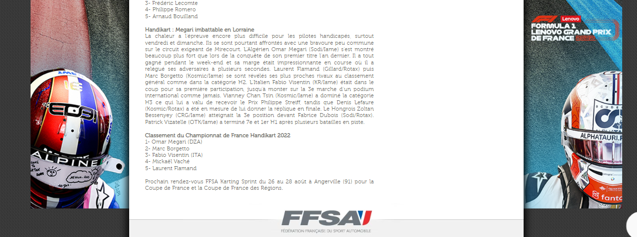 تتويج الجزائري عمر ميغاري ببطولة فرنسا للكارتينغ لذوي الاحتياجات الخاصة