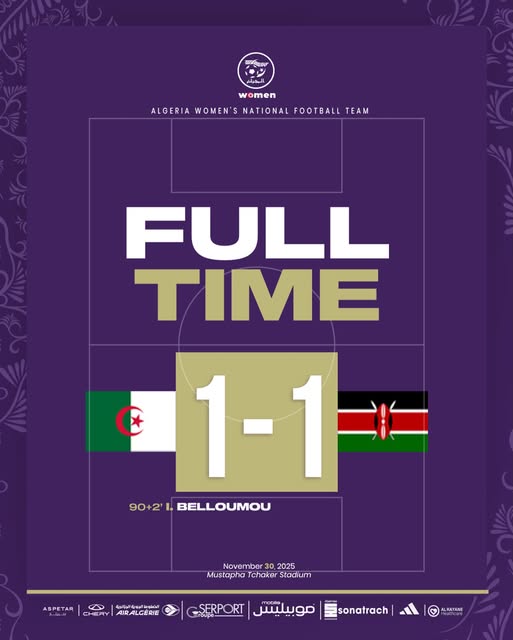 تعادل المنتخب الوطني للسيدات أمام نظيره الكيني، بنتيجة هدف لمثله في مباراة ودية أقيمت اليوم الأحد بملعب مصطفى تشاكر بالبليدة، في إطار استعدادات المنتخب للاستحقاقات المقبلة.