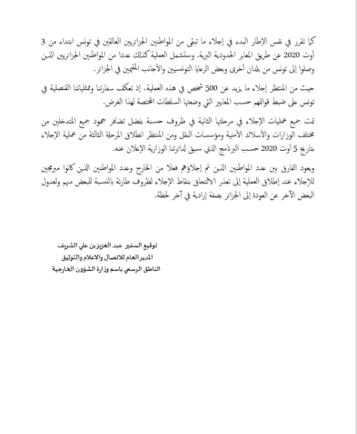 وحسب بيان لوزارة الشؤون الخارجية، انطلقت هذه العملية، بتاريخ 20 جويلية 2020.