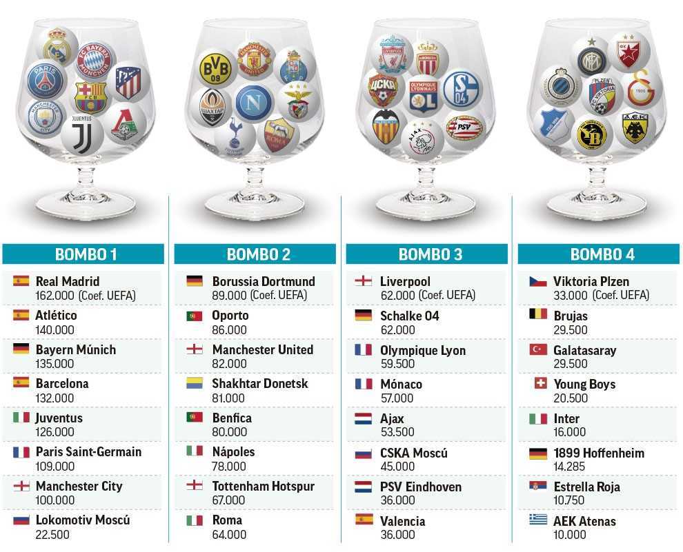 المستوى الأول: ريال مدريد، أتلتيكو مدريد، برشلونة، جوفنتوس، باريس سان جيرمان، مانشستر سيتي، لوكوموتيف موسكو.