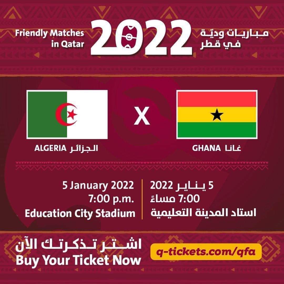كما يحتضن ملعب المدينة التعليمية المونديالي في الدوحة ، المباراة الوديّة الوحيدة للمنتخب الوطني تحضيرا لخوض نهائيات كأس أمم إفريقيا بالكاميرون.