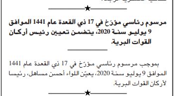 المرسوم وقعه رئيس الجمهورية عبد المجيد تبون، وصدر في العدد الاخير من الجريدة الرسمية.