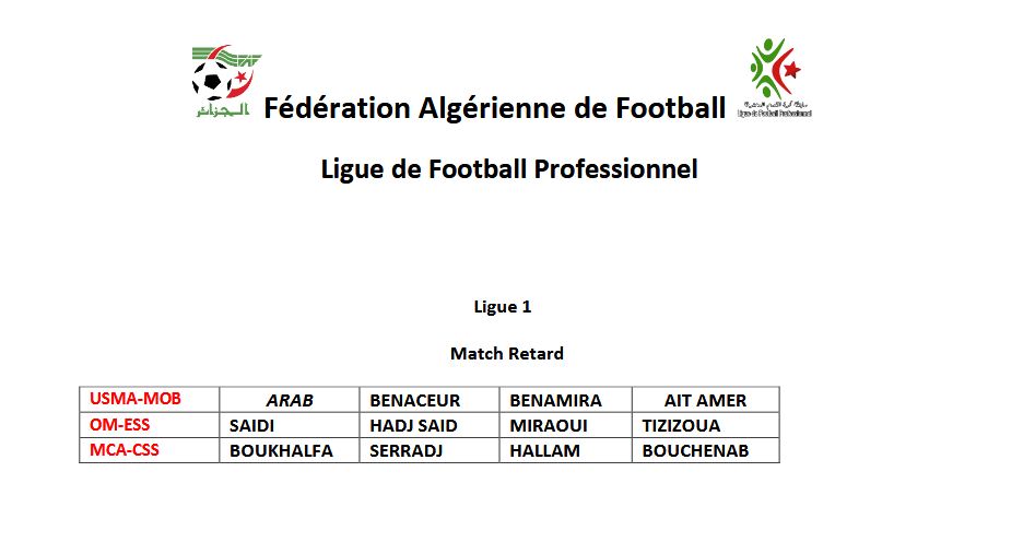 وسيدير الحكم أعراب، مباراة اتحاد العاصمة، أمام مولودية بجاية، والتي تدخل ضمن تسوية رزنامة الجولة الخامسة.