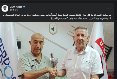 تم عشية أمس الأحد، تعيين سيد أحمد أعراب، في منصب رئيس مجلس إدارة فريق إتحاد العاصمة.