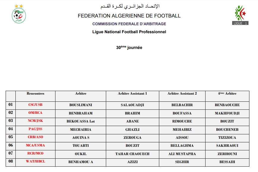 عينت لجنة التحكيم، الحكم توابتي، لإدارة قمة الجولة الـ30 من البطولة المحترفة، والتي ستجمع مولودية الجزائر، باتحاد العاصمة.