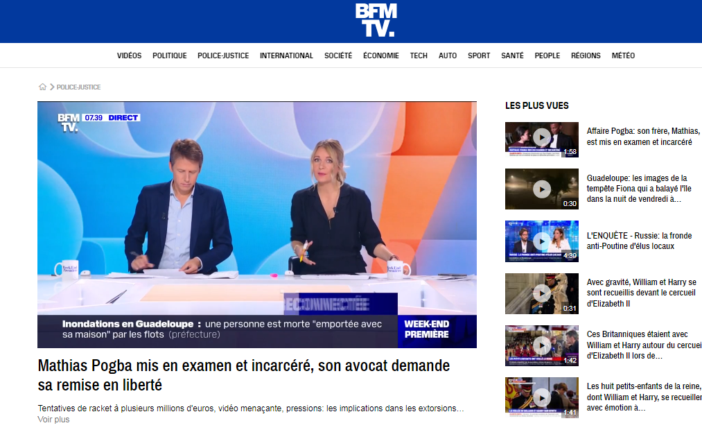 وقال موقع “بي أف أم” الفرنسي، اليوم الأحد، أن ماتياس بوغبا ابتز شقيقه الدولي الفرنسي بول بوغبا. رفقة أربعة من اصدقائه.