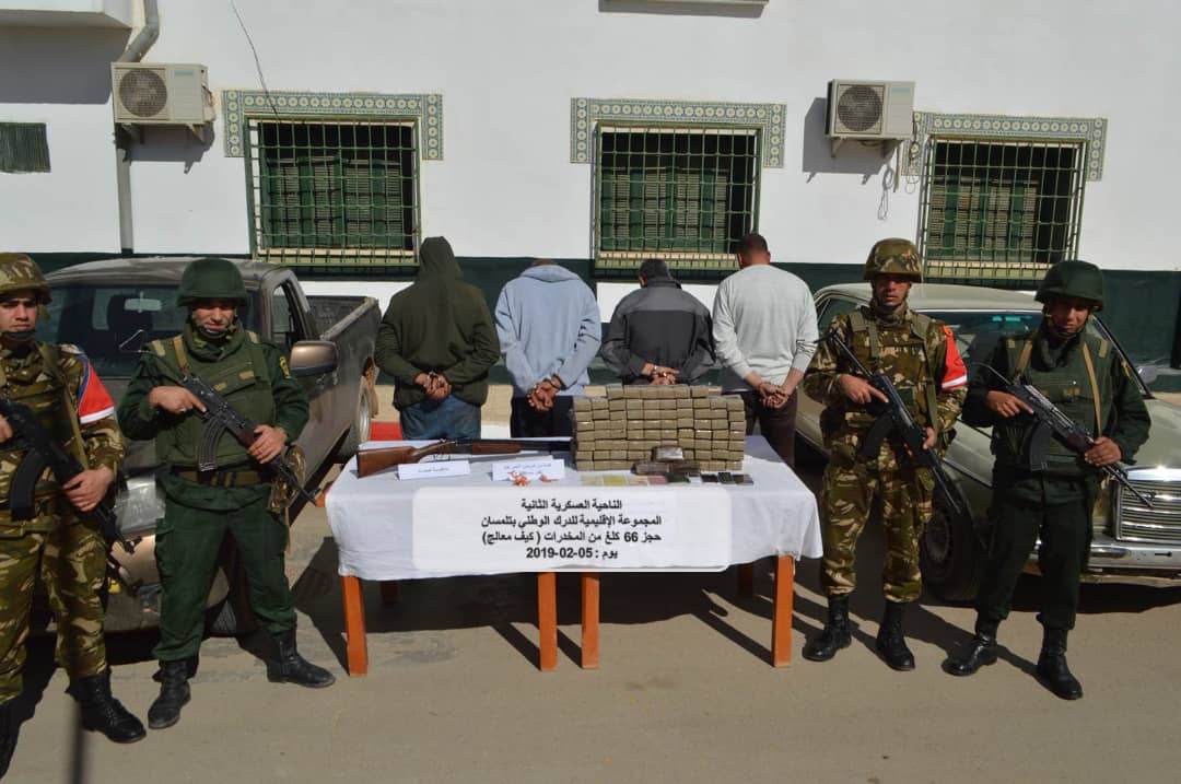 وأوقفت مفرزة مشتركة للجيش، بتلمسان، 4 تجار مخدرات، وحجزت 66 كيلوغرام من الكيف المعالج، وبندقية صيد و3 مركبات سياحية.