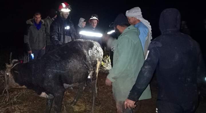 حيث تدخل اعوان الحماية بتسخير عدد من الامكانيات لاستخراج البقرة من البئر حيث تمت العملية بنجاح.