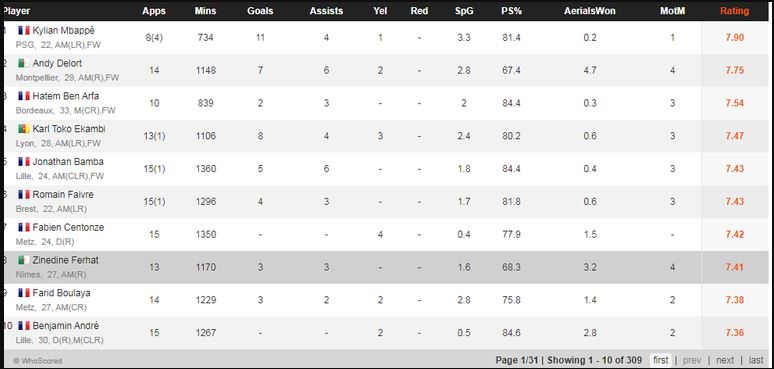 ونشر موقع “هوسكورد” المتخصص في الأرقام والإحصاءات الرياضية ترتيب أفضل اللاعبين عن النسخة الحالية للدوري الفرنسي، حيث شهدت هيمنة جزائرية بوجود ثلاثة لاعبين من المنتخب الوطني.