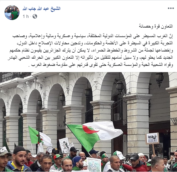 جاب الله: الحراك الشعبي مطالب بالتعاون مع الجيش لتقوية قدراته في مواجهة الضغوطات الغربية
