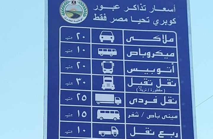 لكن الجدير بالذكر، أن قائمة الأسعار المفروضة على المصريين لعبور جسر “تحيا مصر” بين جزيرة الوراق وشبرا، قد أثارت جدلا واسعا عبر مواقع التواصل الاجتماعي.