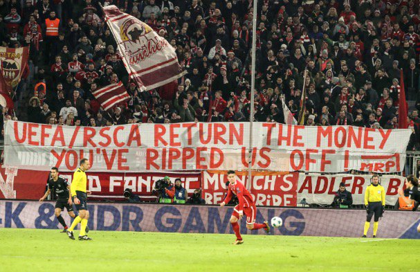 هاجمت جماهير بايرن ميونيخ الاتحاد الأوروبي في مباراة فريقهم أمس ضد باريس سان جيرمان في دوري أبطال أوروبا.