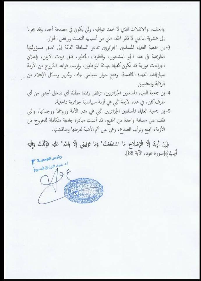 جمعية العلماء المسلمين: اجتنبوا العصيان المدني لأن عواقبه ستكون وخيمة