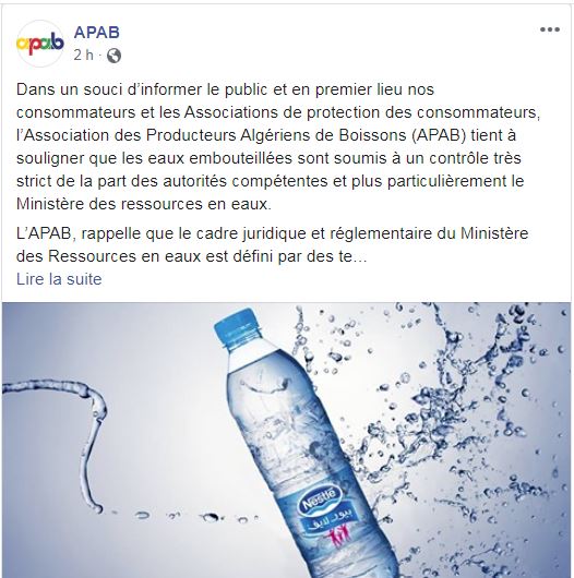 ونوهت الجمعية بأن تحاليل المياه للشركات التي تعتبر أعضاء في الجمعية كان في بداية جويلية 2019 وهذا تم إصدار التنبيه بعد 4 أشهر، بتاريخ 06 نوفمبر 2019.