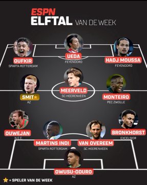 وعلى صعيد آخر، اختير حاج موسى، ضمن التشكيلة المثالية للجولة الـ 9 من “الإيريديفيزي” الهولندية. وذلك بعد تألقه أمس الاثنين، بتسجيله “ثنائية” وصناعة هدف في فوز فينورد الكبير. بسباعية أمام هيراكلس.