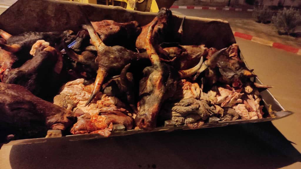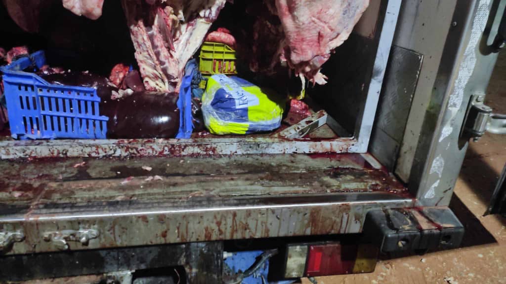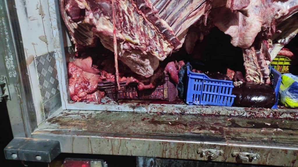 وحسب ذات المصالح، تم كذلك حجز كمية من رؤوس وأحشاء البقر.
