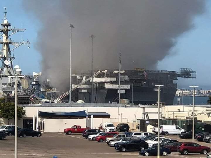حريق مهول بسفينة حربية أمريكية في سان دييغو