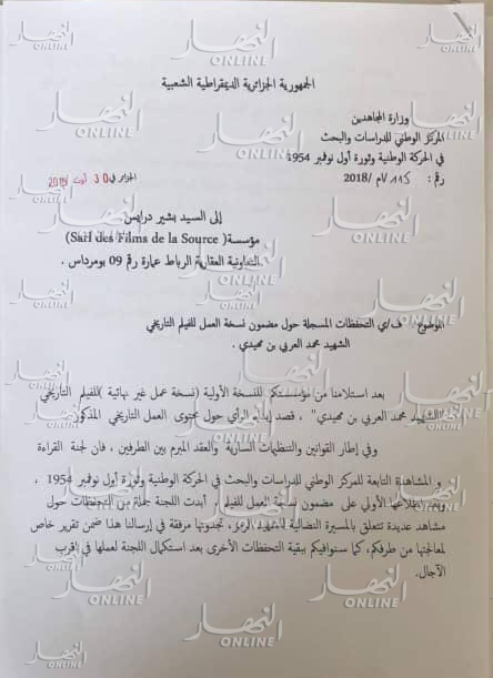 حصريا بالوثيقة.. لهذا السبب قررت وزارة المجاهدين منع عرض فيلم “بن مهيدي” !!