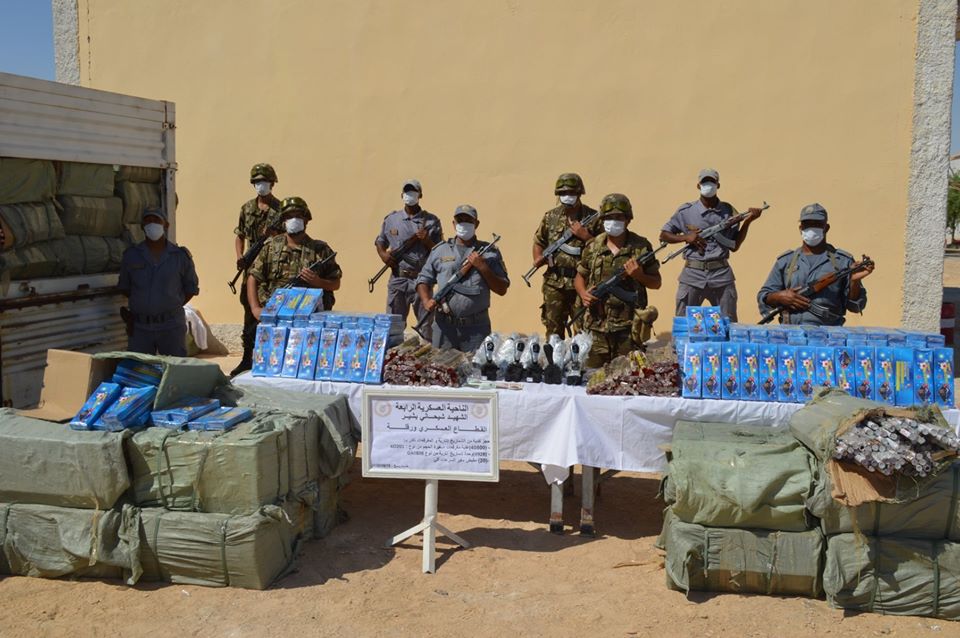 وفي سياق حماية الحدود ومحاربة الجريمة المنظمة، حجزت مفرزة للجيش الوطني الشعبي كمية ضخمة من الكيف المعالج تُقدر بعشرة قناطير بمنطقة عرڨ إيقيدي بولاية أدرار، في حين أوقفت مفارز مشتركة للجيش الوطني الشعبي بالتنسيق مع مصالح الأمن الوطني والجمارك خمسة تجار مخدرات بحوزتهم 191.6 كيلوغرام من الكيف المعالج خلال عمليات مختلفة بكل من النعامة والجزائر وعين الدفلى.