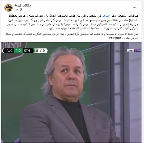 وانفجرت الصفحات الفايسبوكية دفاعا عن رابح ماجر، الذي وصف من الجميع بأنه “أسطورة حقيقية” وجب احترامها من قبل الجميع.