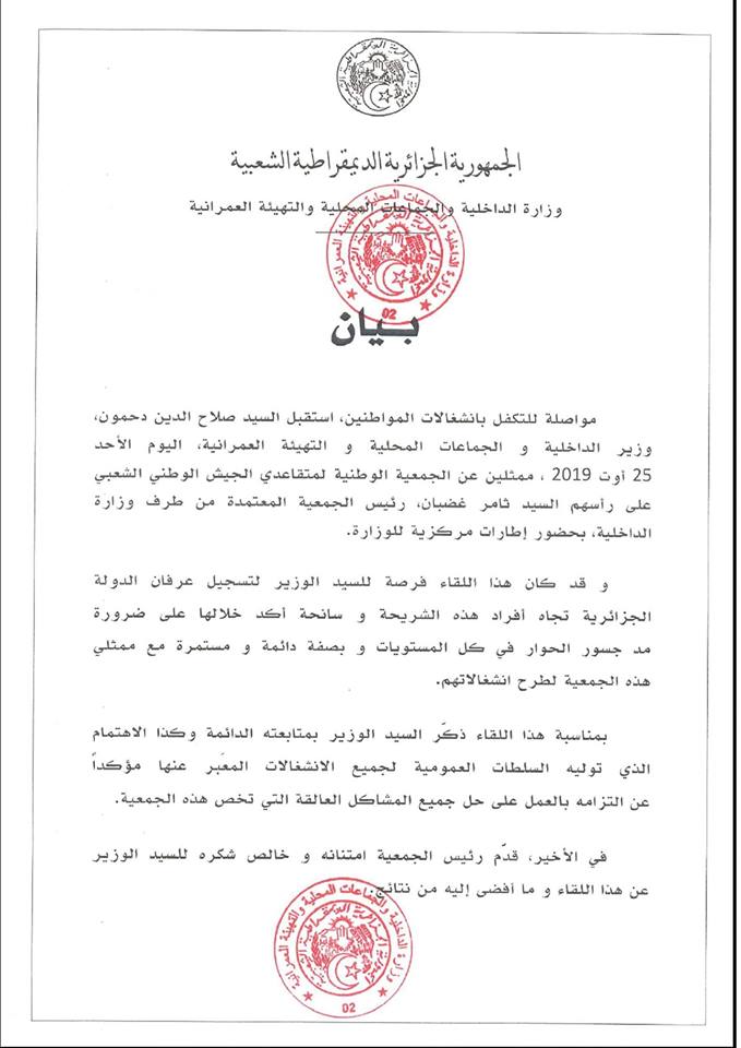 دحمون: “سنعمل على حل جميع المشاكل العالقة للجمعية الوطنية لمتقاعدي الجيش”