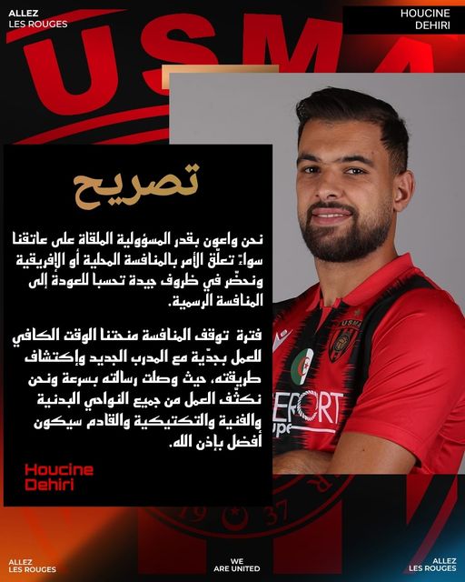 وختم لاعب الكتيبة الوطنية المحلية “رسالة المدرب وصلت بسرعة و نحن نُكثّف العمل من جميع النواحي، البدنية و الفنية والتكتيكية و القادم أفضل بإذن الله”.