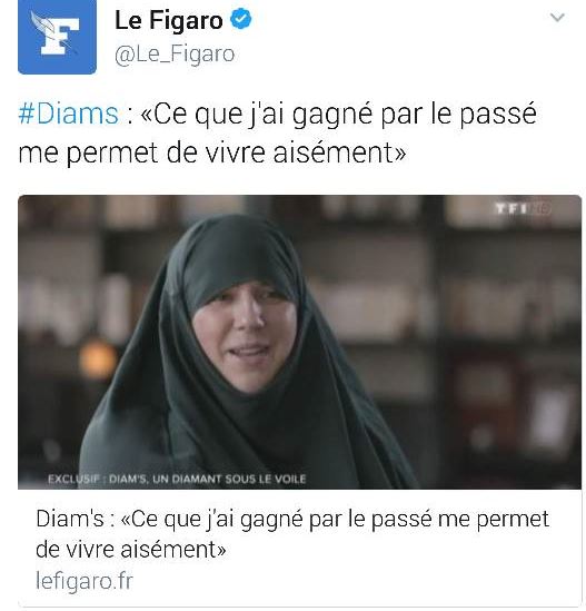 وللاشارة فإن المغنية الفرنسية القبرصية إعتزلت الراب في عام 2012 بعد دخولها الاسلام.