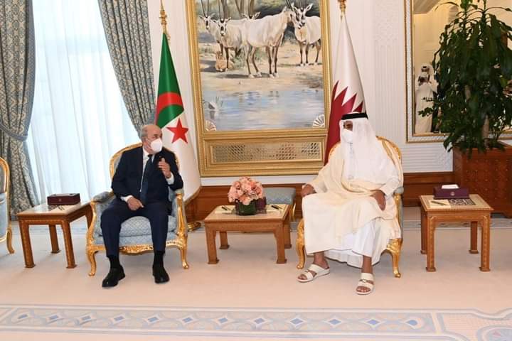 وحسب بيان لرئاسة الجمهورية، تم عقد جلسات موسعة وانفرادية بين رئيس الجمهورية عبد المجيد تبون. والشيخ تميم بن حمد آل ثاني أمير دولة قطر.