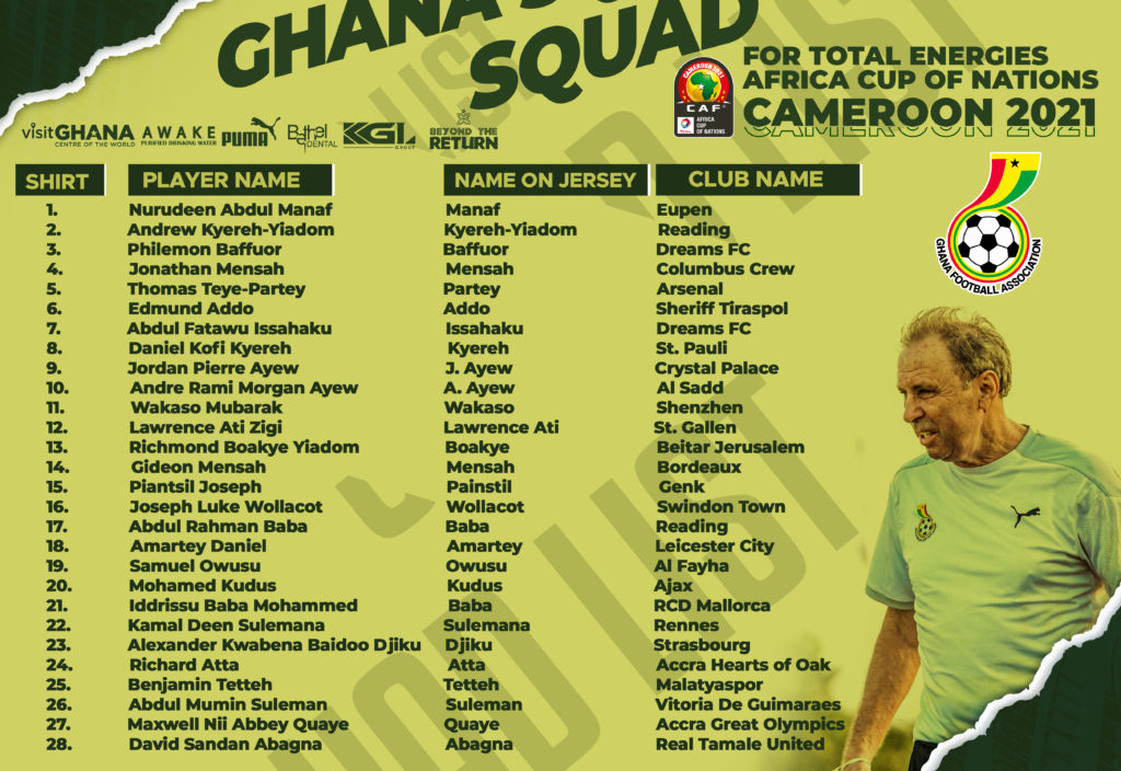 أعلن ميلوفان راييفاتس، مدرب منتخب غانا، عن القائمة النهائية المعنية بالمشاركة في “الكان”، وذلك ساعات قبل مواجهة الخضر. غدا الأربعاء.