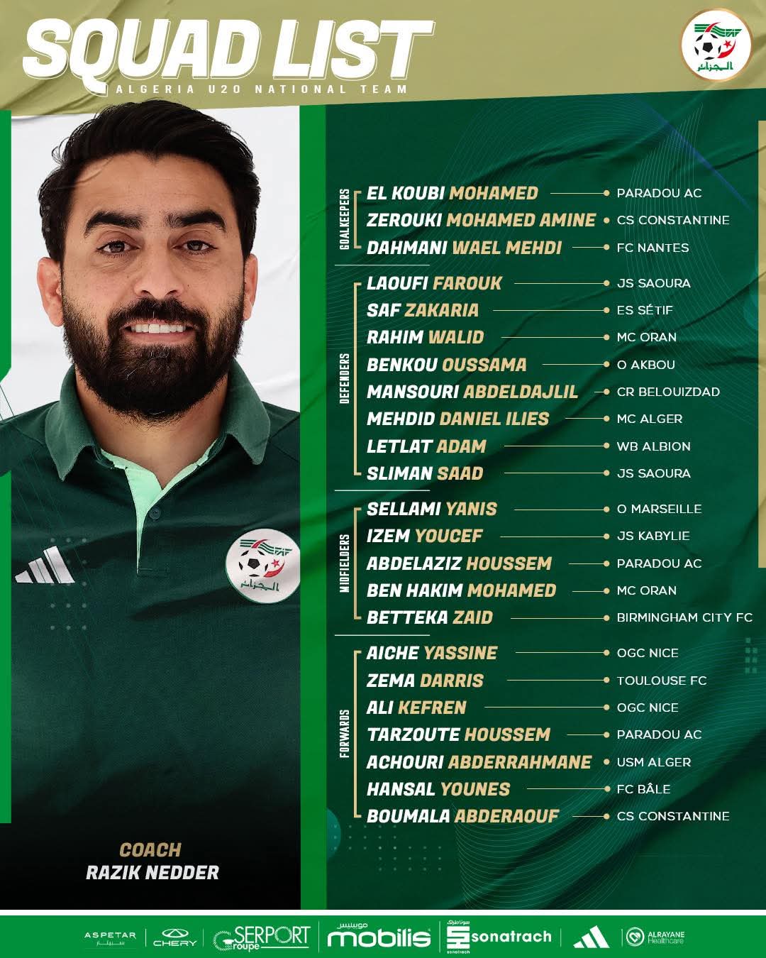 رزقي نادر يستدعي 23 لاعبا لتربص المنتخب الوطني لأقل من 20 عاما