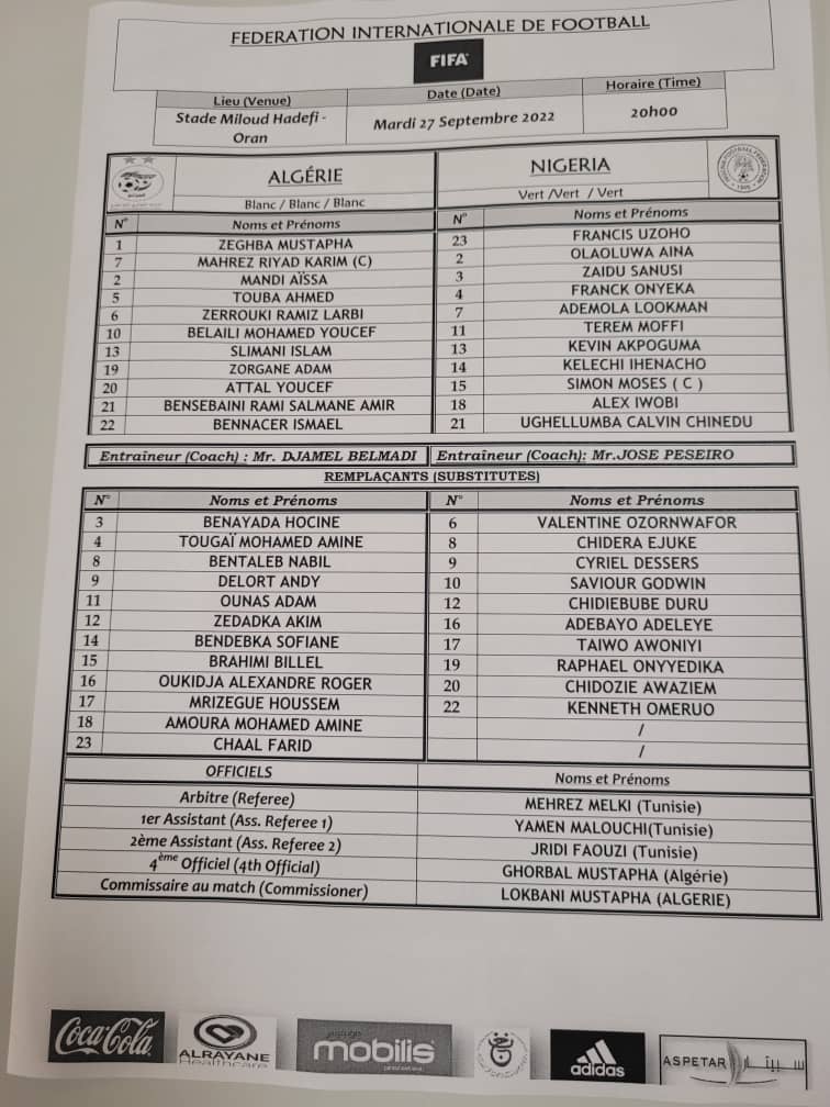 كشف الحساب الرسمي للاتحاد الجزائري لكرة القدم عن التشكيلة الأساسية للمُنتخب الوطني أمام نيجيريا.