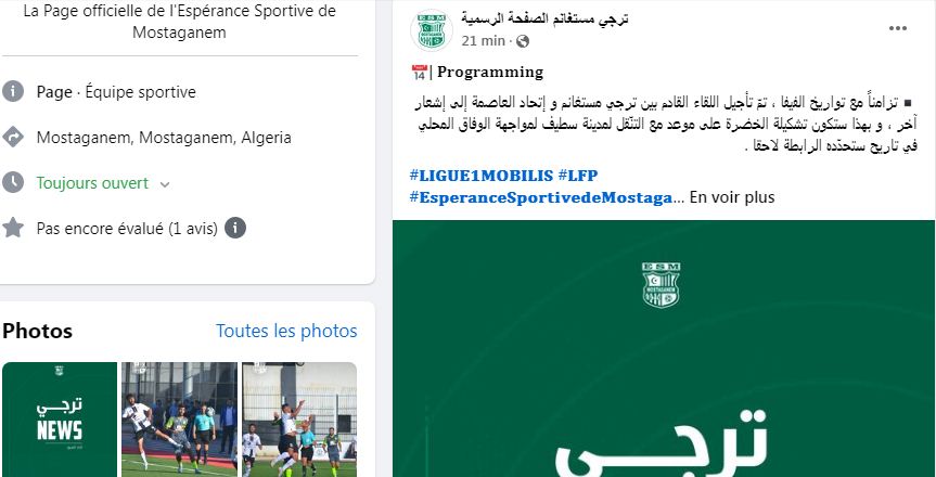 ترسّم تأجيل مواجهة اتحاد العاصمة والمُضيف ترجي مستغانم، المندرجة ضمن فعاليات الجولة الـ 4 من البطولة المحترفة لكرة القدم.